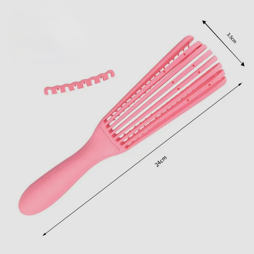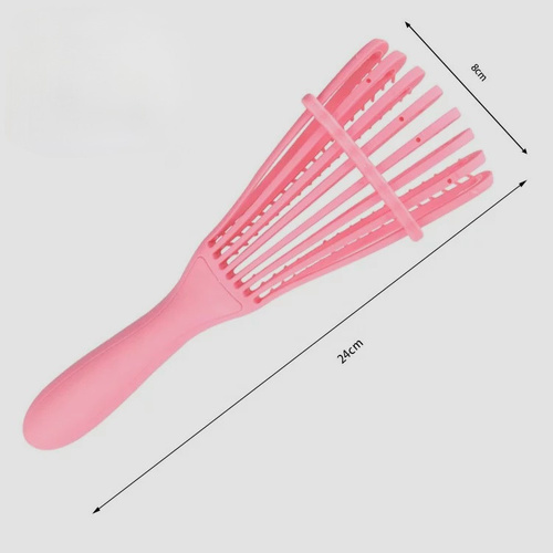 این برس مناسب باز کردن گره ی موهای فر ریز فردرشت موج دار و انواع مو فر است جنس پلاستیک منعطف وسیلیکونی دارد خیلی محکم وخوش دست است هشت ردیف باریک دارد که با یک نوار به هم متصل میشوند و میتوانید از این نوار استفاده کنید یا میتونید نوار رو بردارید این برس یکی از محبوب ترین برس ها بین موفرفری هاست چون مو ها را نمی‌کشد و خیلی راحت ونوازشی گره های سخت مو ها را باز میکند این برس را میتوانید تنظیم کنید اگر موهای پر و کوتاهی دارید نوار پشتی برس را بالا تنظیم کنید و اگر موهای بلند و ضخیمی دارید نوار را پایین تنظیم کنید نواری که روی شانه قفل شده از قسمت پشت شانه دو محل دارد که برای تنظیم است